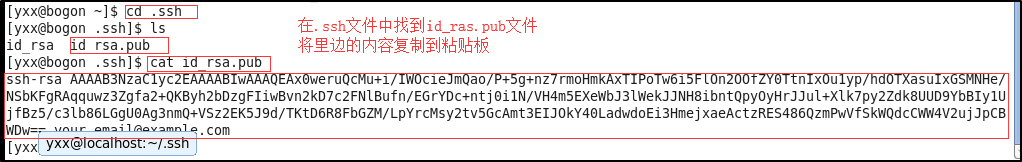 2.3 在.ssh文件中找到id_ras.pub文件,将里面的东西复制