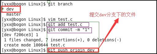 第二步:将test.c提交到dev分支下