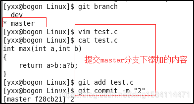 第三步:切换到master分支上,在test.c中添加新内容,重新提交到仓库上