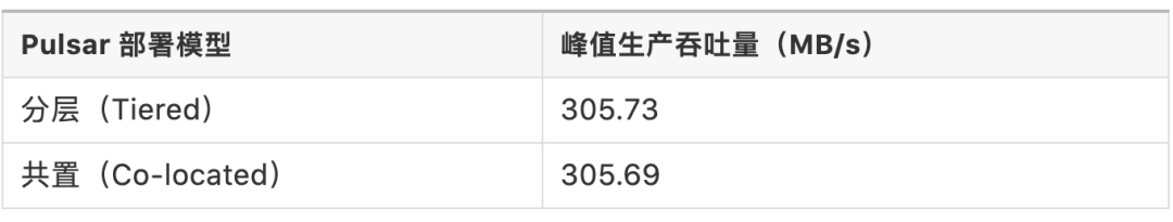 即使在高吞吐量下,系统也主要受到 I/O 限制,而且我们没有发现这种设置带来任何提升。该特定运行的完整结果见下表。事实上,Pulsar 的两层架构似乎只是增加了开销——两个 JVM 占用了更多的内存、两倍的网络传输以及系统架构中更多的移动部件。我们预计,当网络受到限制时(不像我们的测试提供了过剩的网络带宽),Pulsar 的两层架构将以两倍的速度耗尽网络资源,进而降低性能。