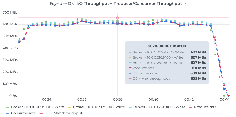 无论如何,由于这可能是一个有争议的话题,所以我们分别给出了这两种情况下的结果,以确保我们的测试尽可能的公平和完整,尽管运行带有同步 fsync 功能的 Kafka 极其罕见,也是不必要的。