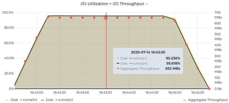 图 9:Prometheus 节点指标显示,BookKeeper journal 磁盘在 RAID 0 配置下仍然达到极限