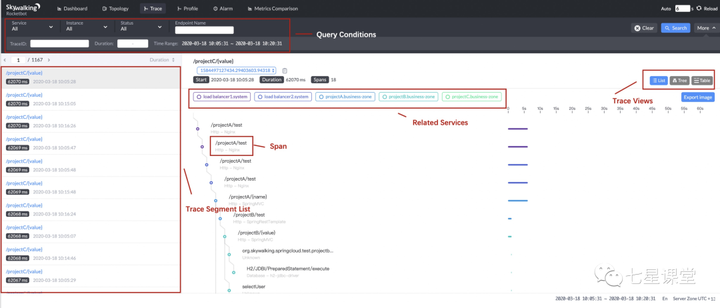 跟踪查询是与skywalking提供的分布式代理一样的典型特性.