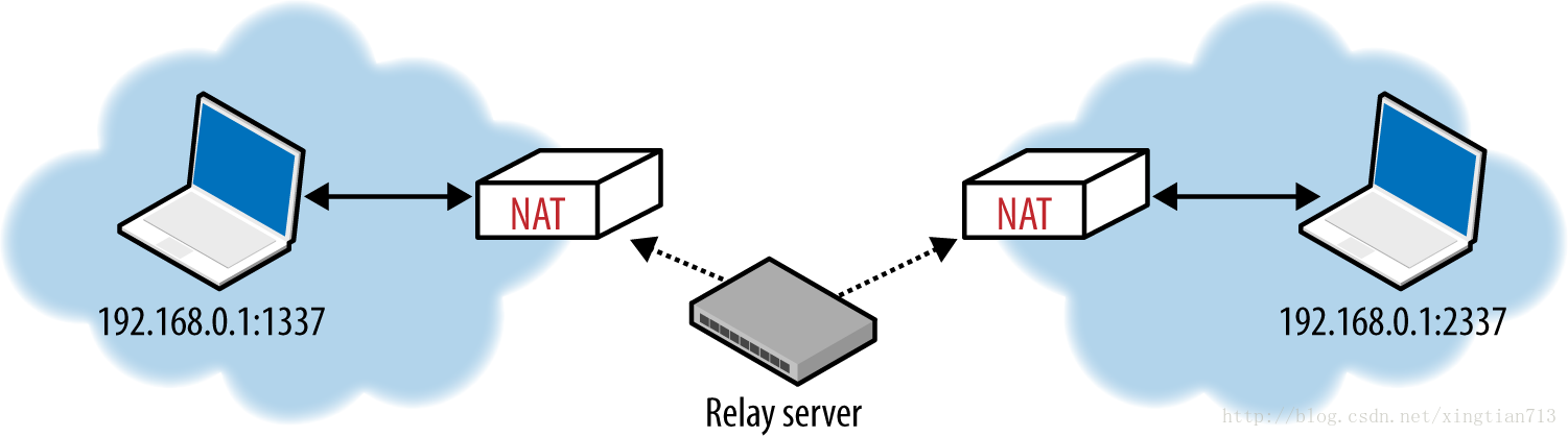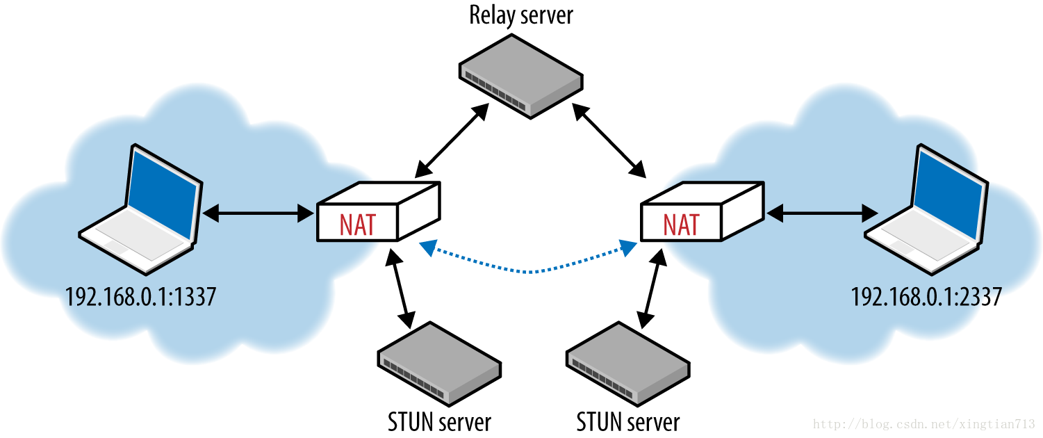 为了解决这种UDP的穿越问题,各种穿越技术(STUN,TURN,ICE)被提出了,用于建立在 两个内网主机之间建立端至端的连接。