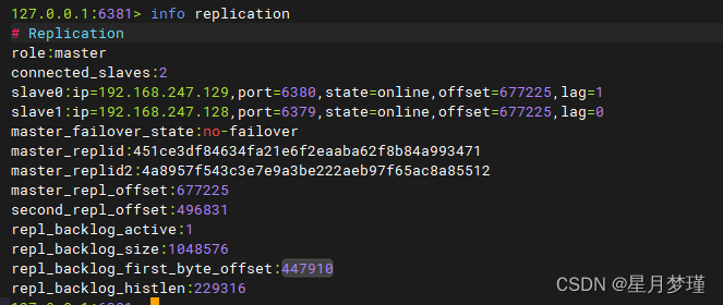 | 主站(192.168.247.128:6379) | 从站1(192.168.247.129:6380) | 从站2(192.168.247.130:6381) | |