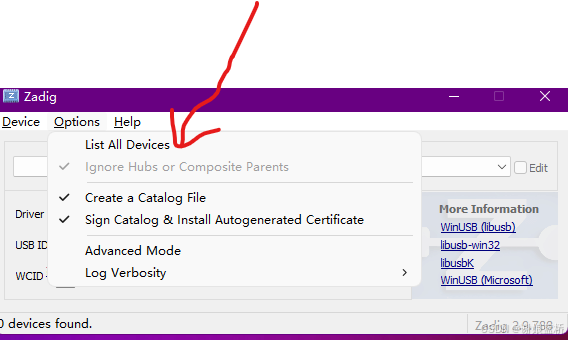 xmos xtag3 驱动动态选择 libusb 对应xTIMEcomposer winusb对应 xtc。但是驱动来回切换比较麻烦,后来发现一个工具,比较好用,同步给大家。点开后,选择options 内 List ALL Devices。根据需求选择 libusb-win32 或者 winusb。这样工具切换驱动比较方便,不用一级一级 切换。上回讲了 xmos 基础环境搭建。选择 xmos XTAG-3。搬过来的,也可以去官网下载。