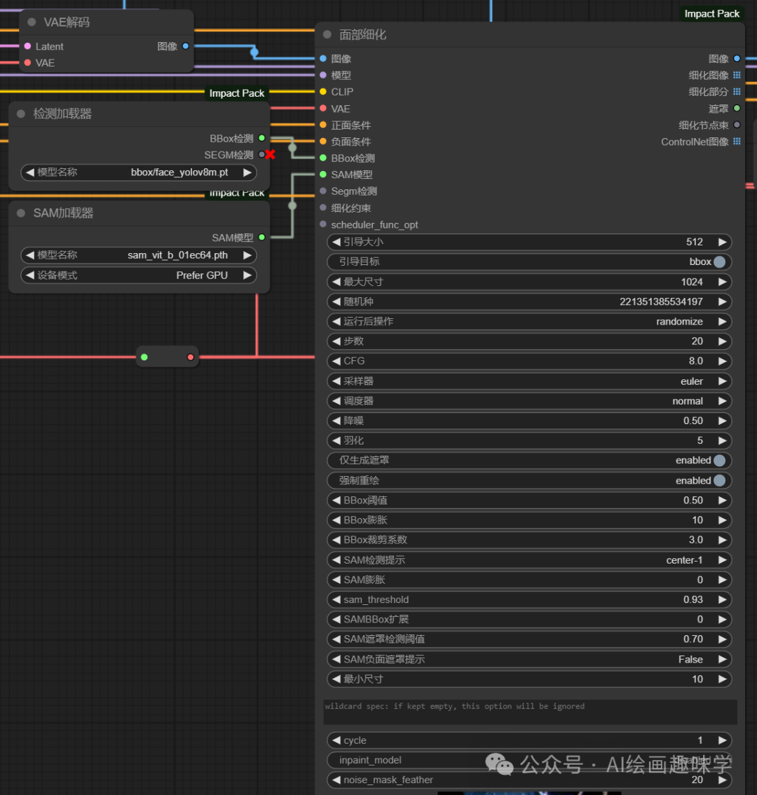第三步:这一步要用到面部细化节点,这个也是我们平时比较常用的,针对面部做一些优化,减少瑕疵。
