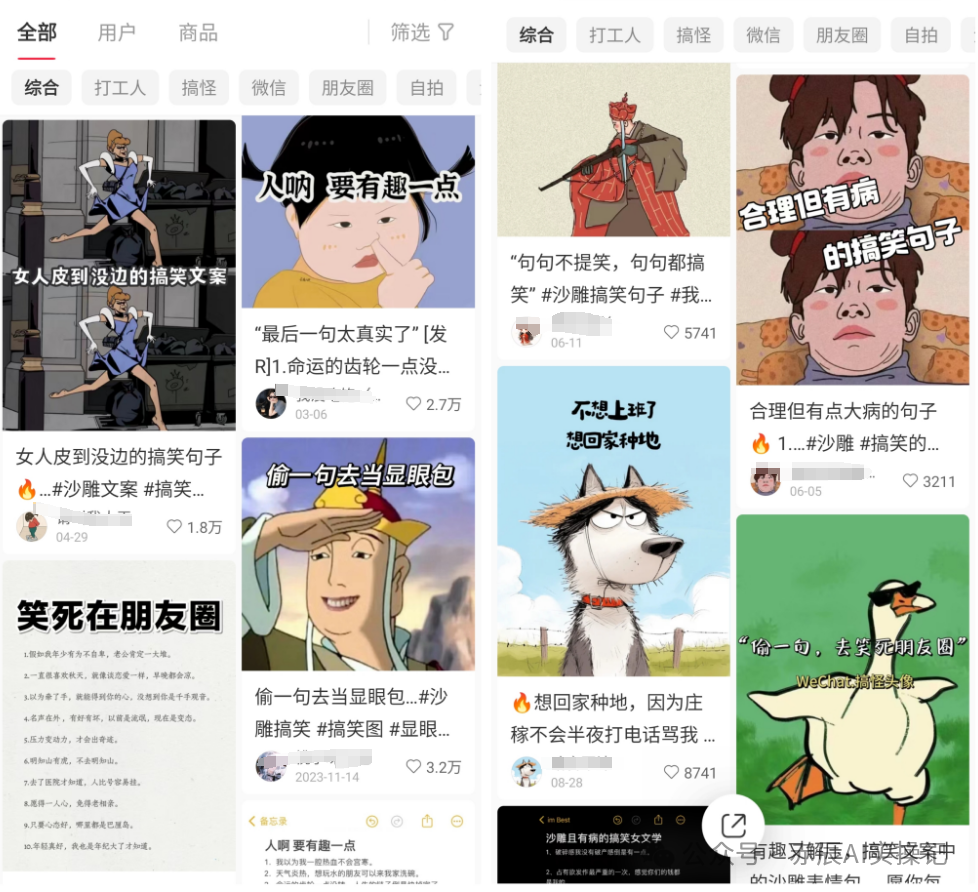 爆款沙雕文案,全网最多的,应该是在小红书以及公众号平台上,这里需要大量收集对标账号文案,建议单次可以收集20-30条,这样后期批量制作的时候,就可以省下大量碎片化查找的时间。