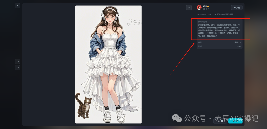 页面会跳转至这张图片的详细的指令参数,包括提示词。