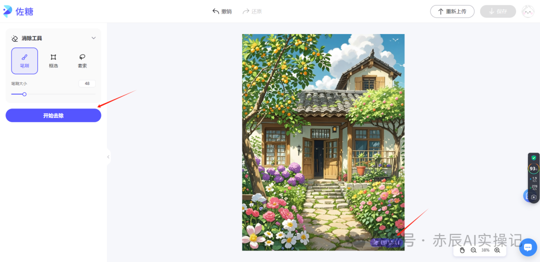 接着上传需要处理的图片,在画面中涂抹需要去除水印的位置。