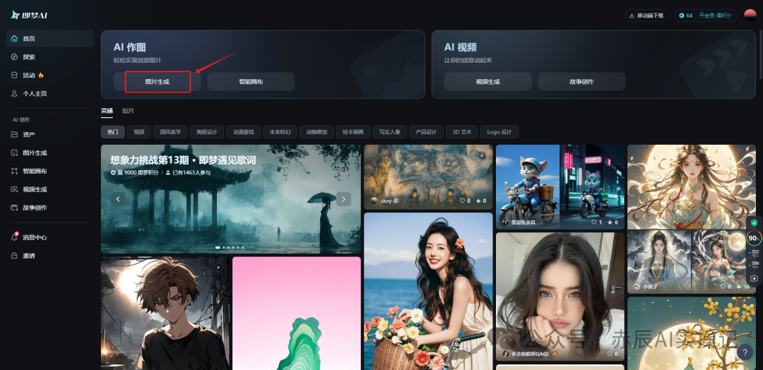 点击链接,进入即梦官网主页后,点击“图片生成”。