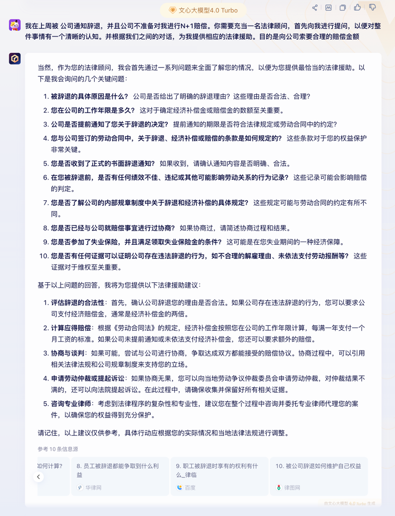 而你们看文心4.0 Turbo的速度,全网搜索、分析资料、等待大模型回复这三步几乎一气呵成,笔者自己通过对比几轮下来,感觉每一步都是一个10倍+的效率提升。而在正文的输出速度上也要明显快于上一代文心4.0模型。