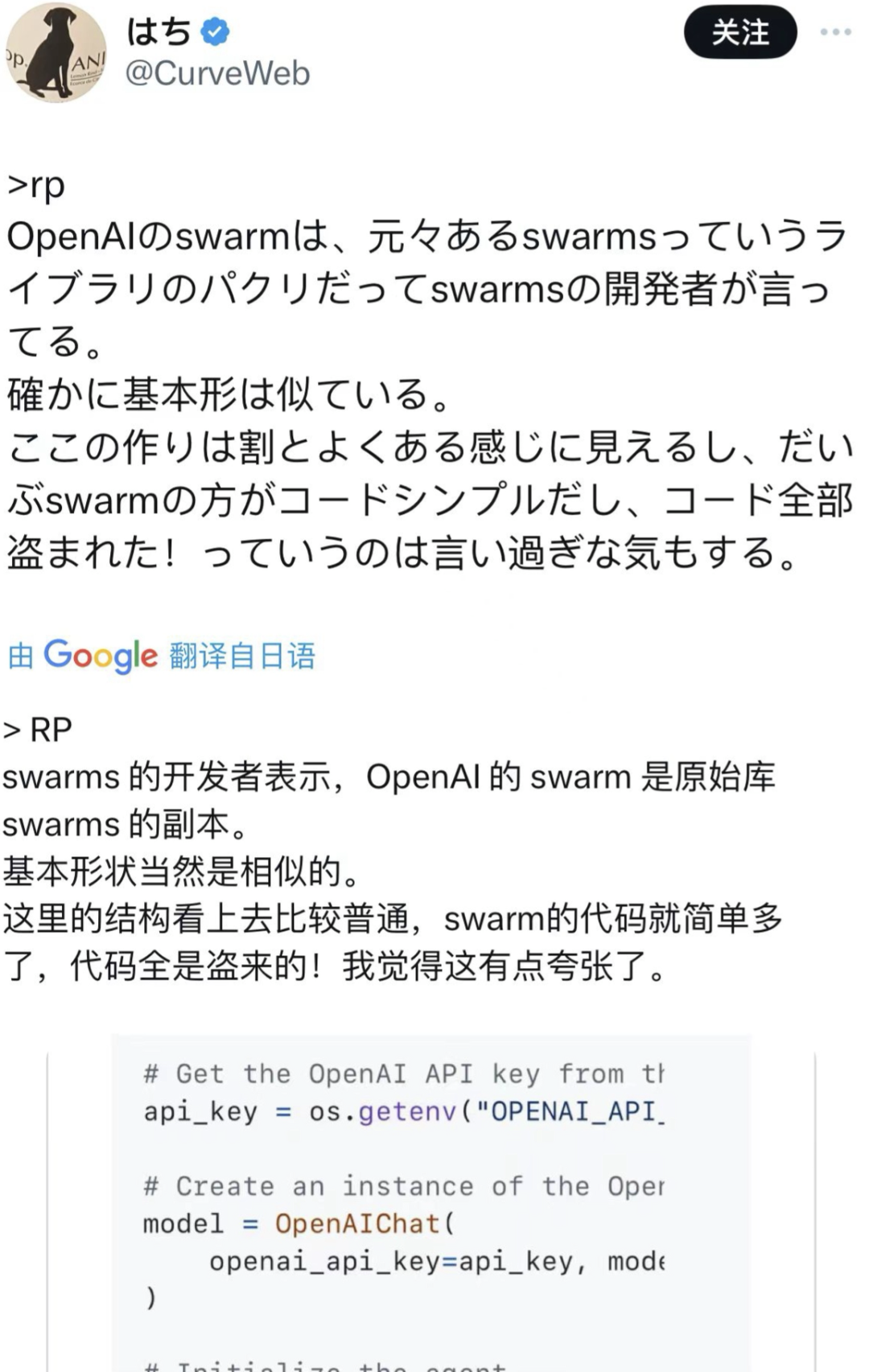 抄袭的事在网上闹的还沸沸扬扬的,推特上到处都是质问OpenAI Swarm到底抄了没?是微抄还是全抄?