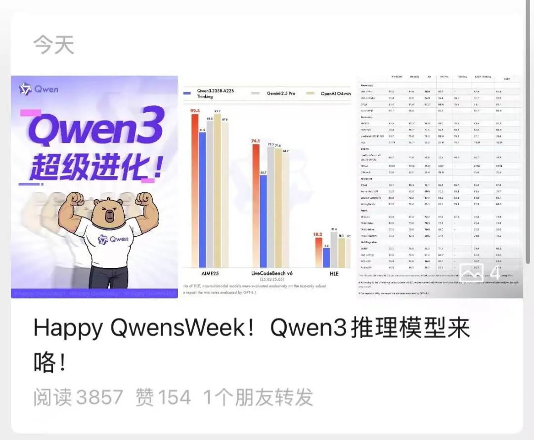 这周,Qwen 用一套“三箭齐发”的组合拳,覆盖了通用、代码和深度思考的全场景,直接宣告:这周,是当之无愧的“通义时刻”!