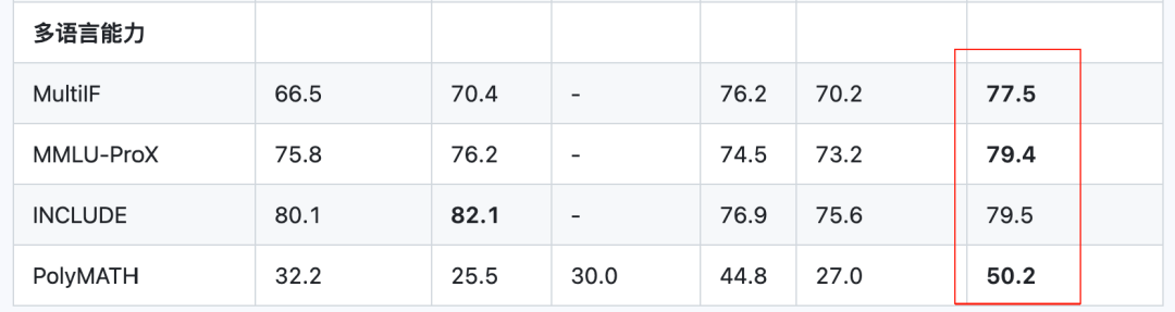 模型在通用能力基准测试中表现非常能打,而且因为模型对多语言长尾知识的加强训练,它的“外语”水平直接突破天花板。