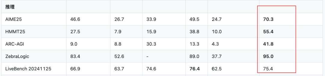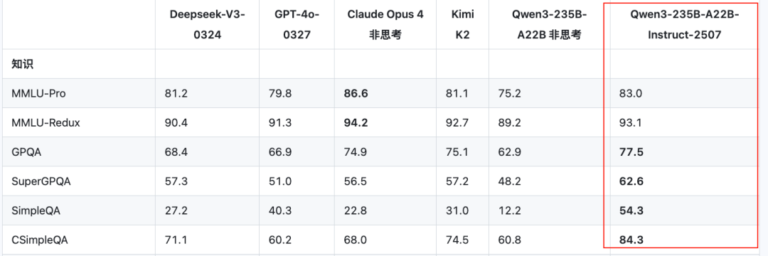 绝大部分榜单的表现比闭源的 Claude Opus 4 非思考版本还要好。