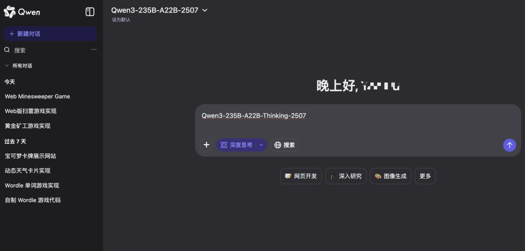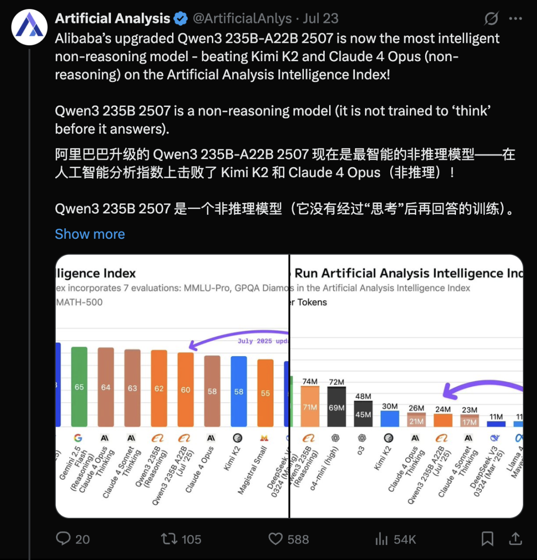 就是 Qwen3-235B 的 Non-thinking 版本,模型全称为 Qwen3-235B-A22B-Instruct-2507,已经在 7 月 22 日更新上线。
