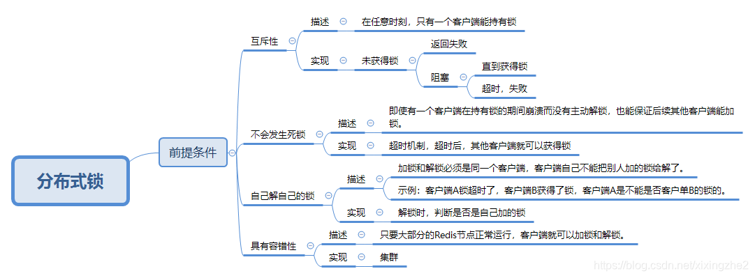 - 互斥性。在任意时刻,只有一个客户端能持有锁。