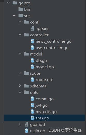 gin项目结构根据自身需要,大题如下设置: