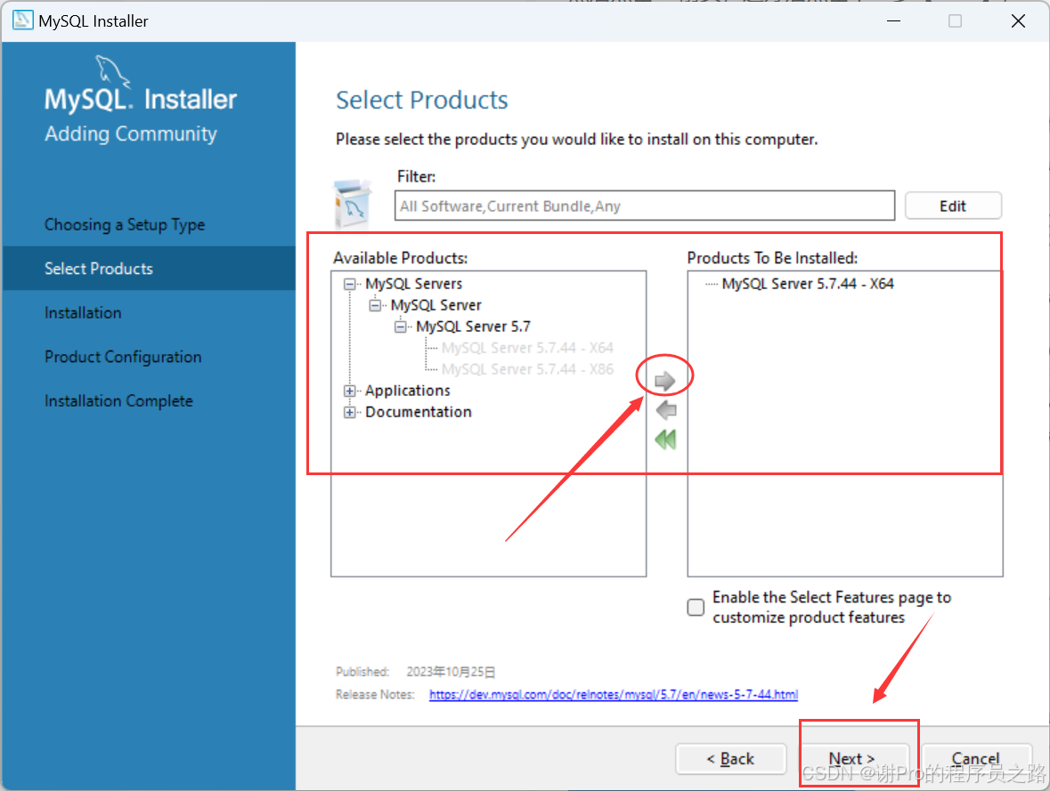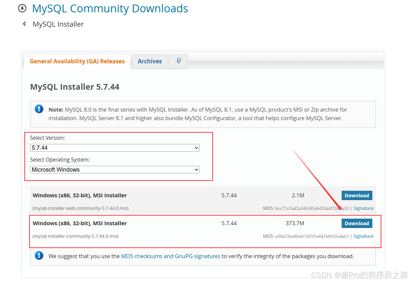 选择需要安装的【Mysql servers】 的版本,根据自己电脑位数进行选择【x64为例】