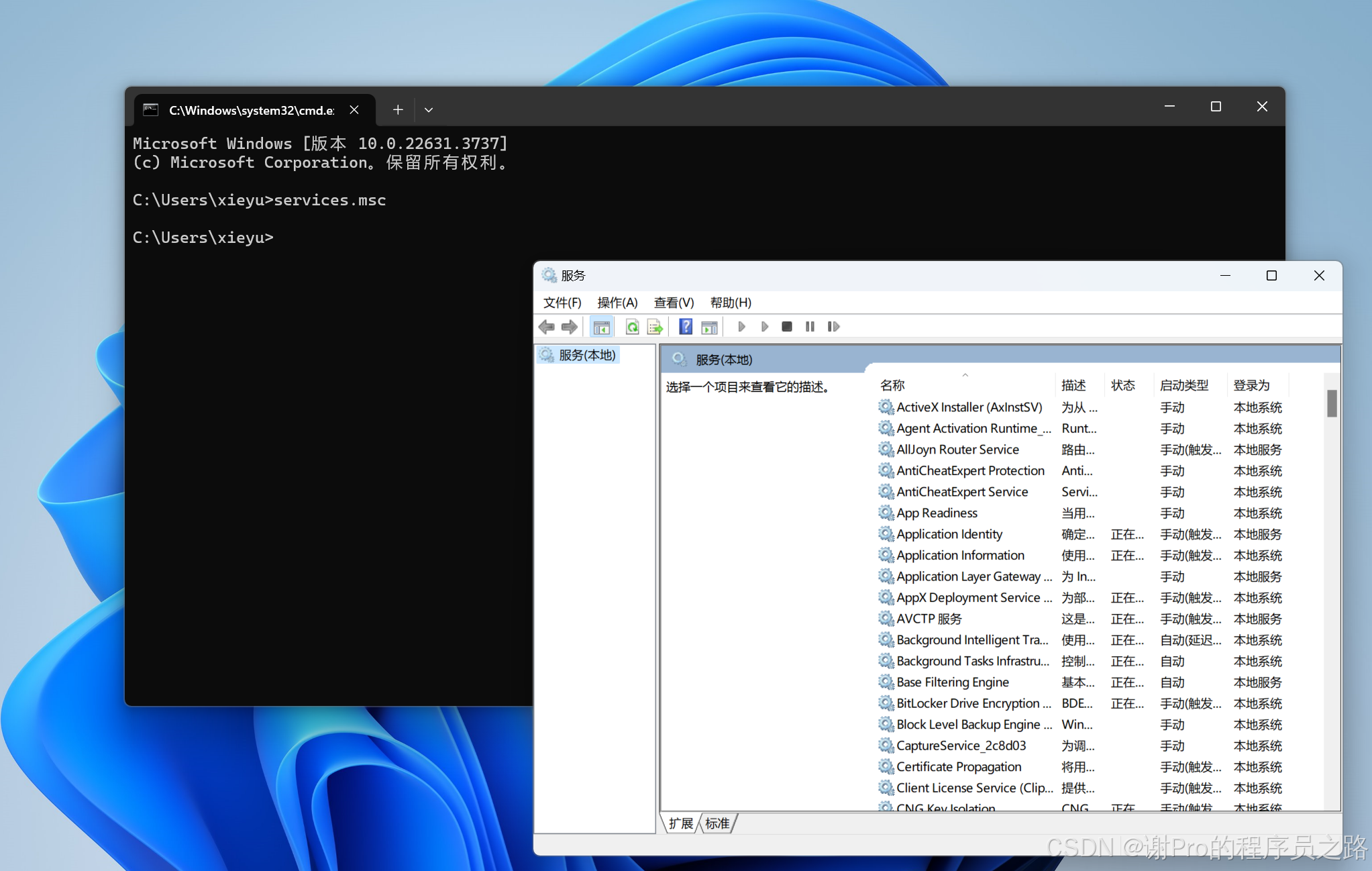 - 在终端页面输入services.msc,回车,弹出如下窗口,如图:
