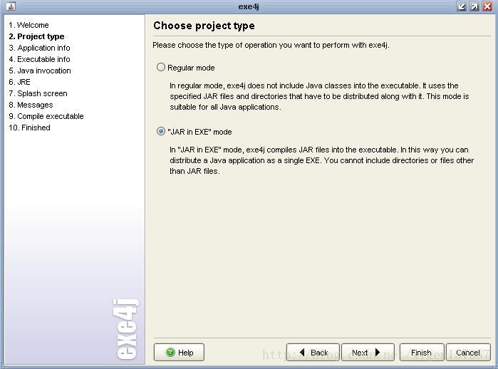 在弹出窗口,选择“JAR in EXE mode”,点击“Next”