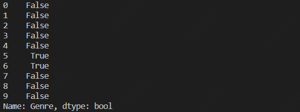返回的mask是一维的Series,结构与 movies.Genre相同,取值为True 或 False.