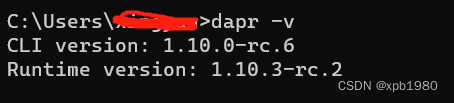 然后输入dapr -v查看,输出以下信息表示配置成功: