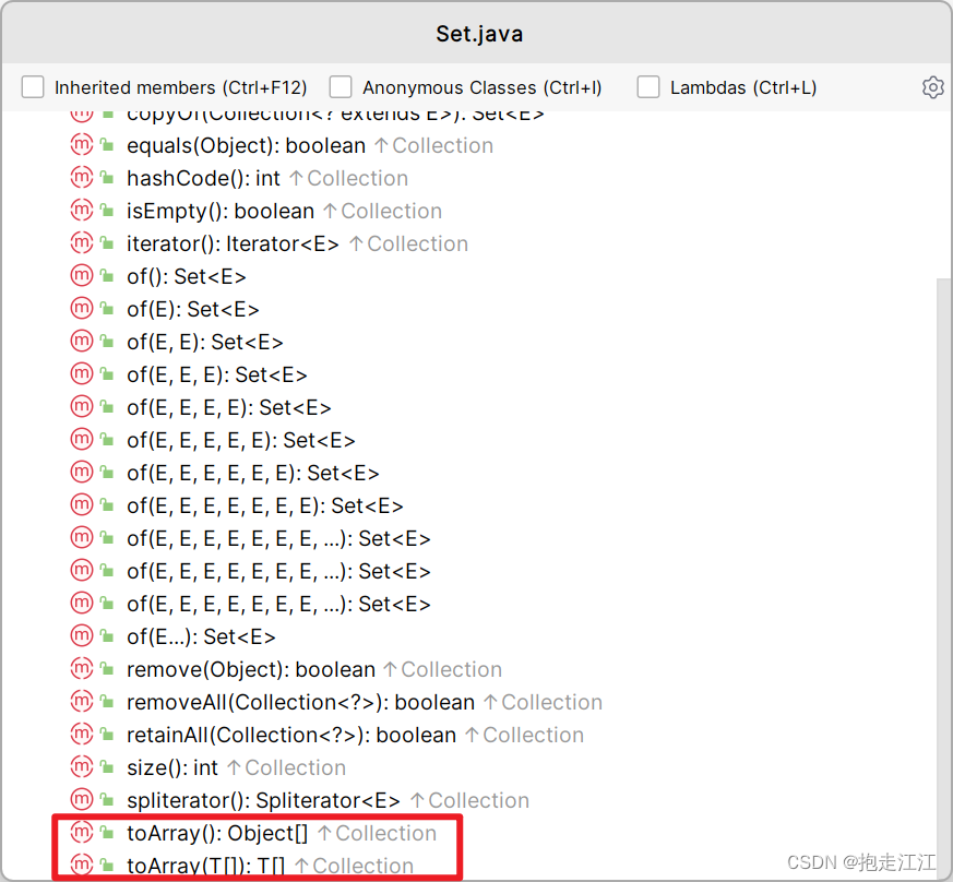 无参的 toArray 方法默认返回一个Object 类型的数组,并不常用。