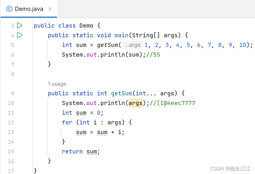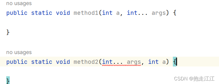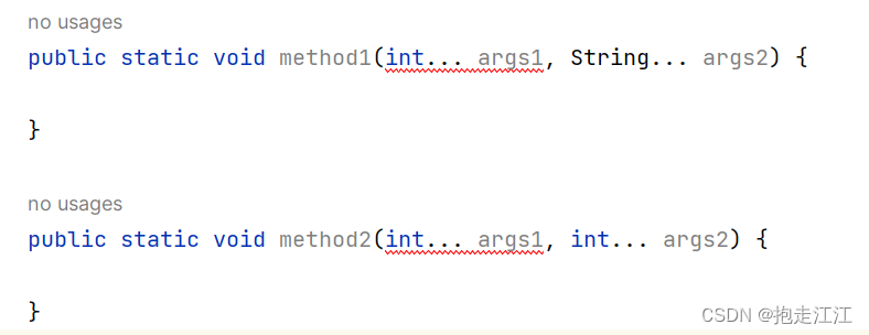 但这样写就错了,前面说过,在方法的形参中最多只能写一个可变参数,所以没有办法定义。