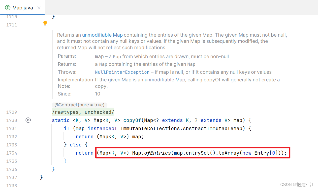 但是这种写法过于麻烦,也不容易记,为此 Map 又定义了一个 copyOf 方法进行了封装。