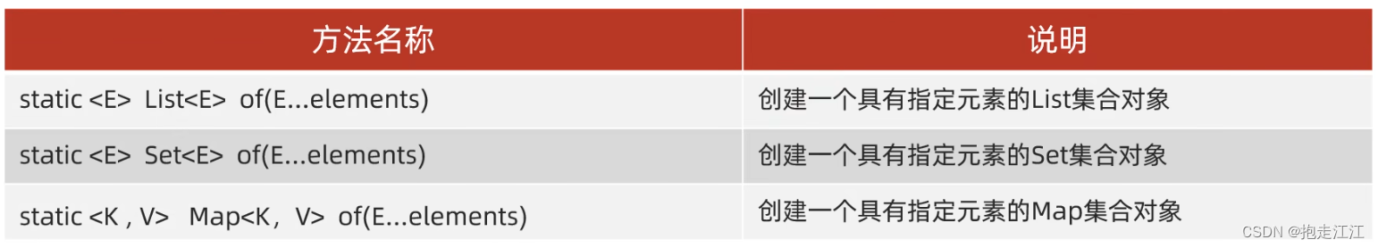 在 List,Set,Map接口中,都存在静态的 of 方法,可以获得一个不可变的集合。