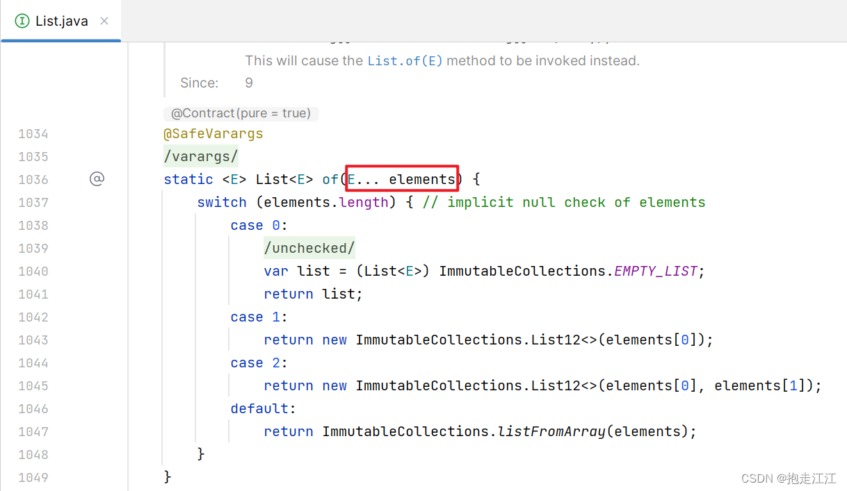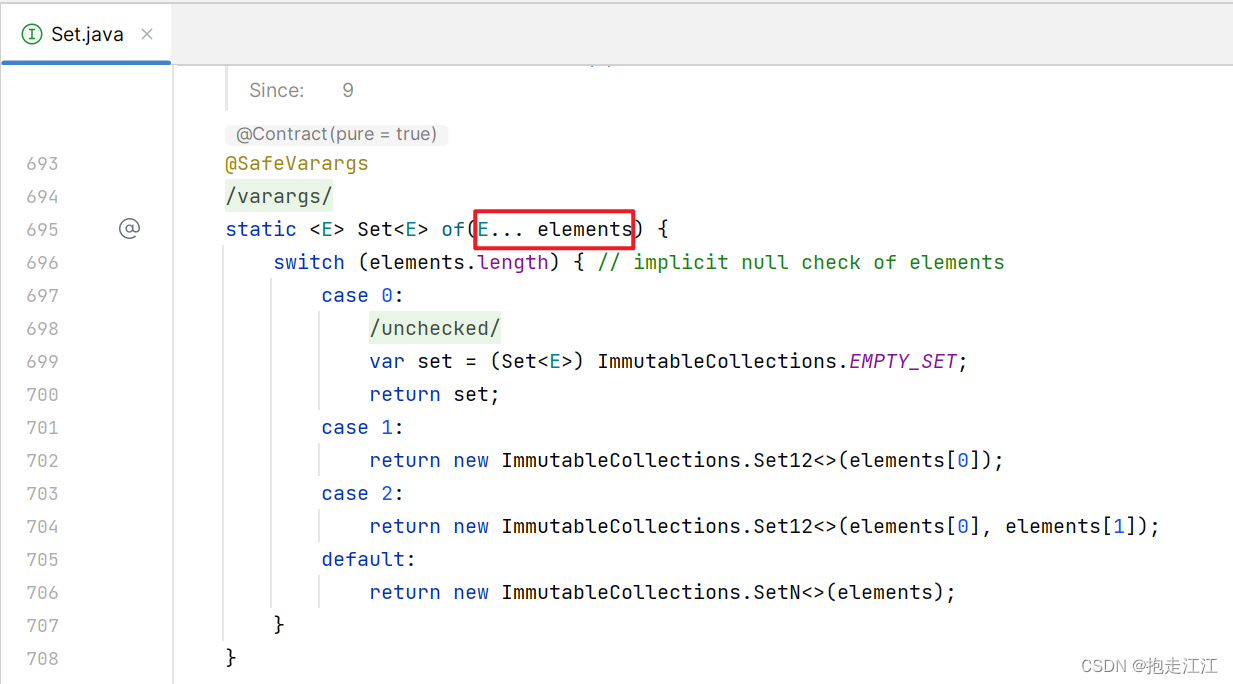 ② of 方法的形参是一个可变参数,所以创建集合时,可以传递很多数据。