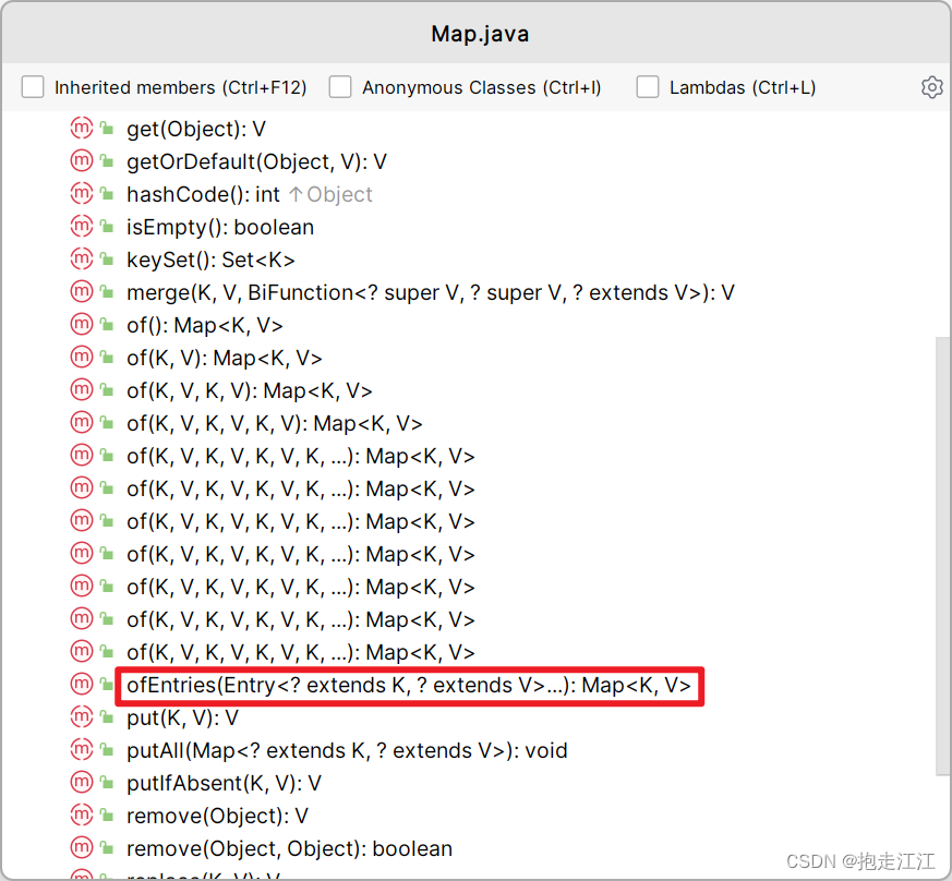 没错,Map 也是这么实现的,它提供了一个 ofEntries 方法,形参是一个 Entry 类型的可变参数。