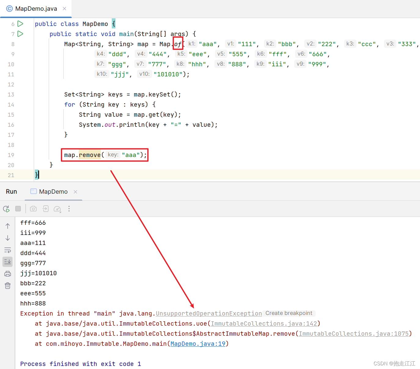 ② 由于 Map 集合中键是是不能重复的,所以 of 方法中的键也不能重复。