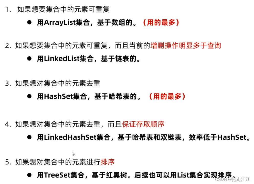 ① 添加元素时,如果是往 List 系列集合中添加元素,那么返回值永远为true,因为List系列是允许重复的。