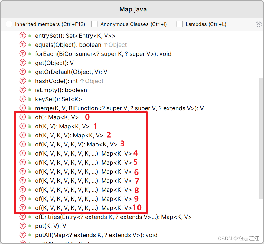 of 方法提供 11 个重载方法,参数中键值对的数量由 0 到 10。