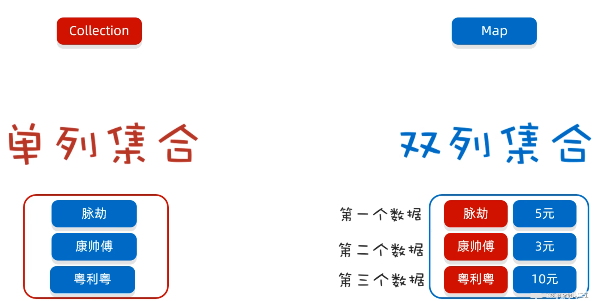 由于Collection是单列集合的顶级接口,所以遍历得兼容 List系列和 Set 系列。