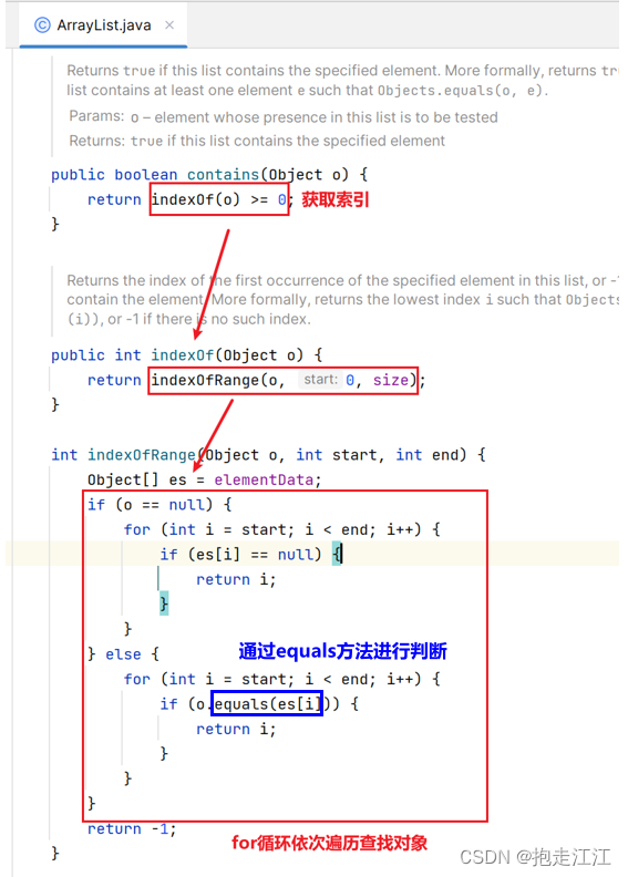 底层是通过for循环依次遍历,依赖 equals 方法进行判断是否存在的。