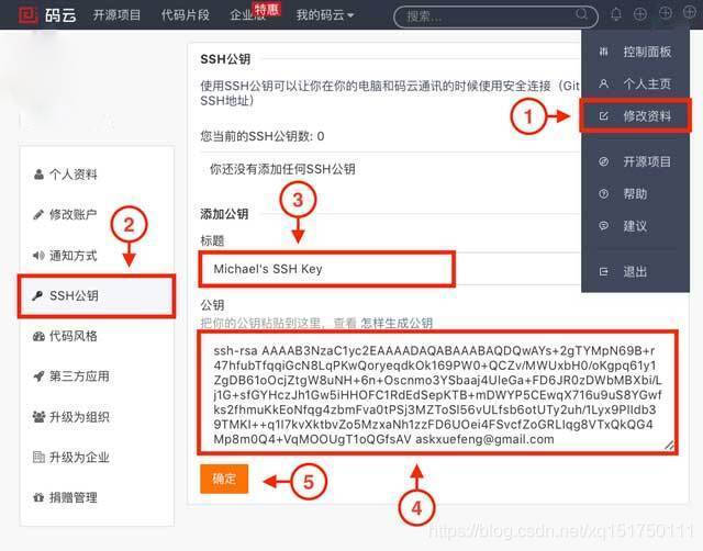和3.1节步骤一样,从而实现免密码登录!(免密码登录,这一步挺重要的,码云是远程仓库,我们是平时工作在本地仓库!)