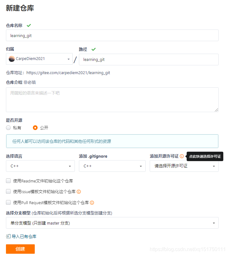 git remote add origin git@gitee.com:carpediem2021/learning_git.git