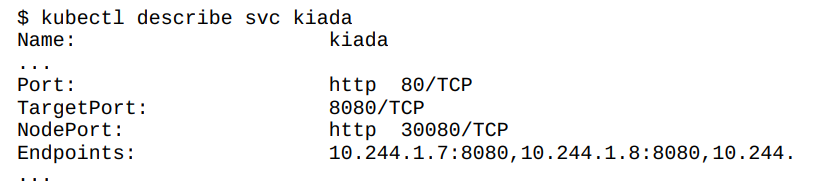 注意 你也可以使用 kubectl describe svc 命令查看每个服务的详细信息。