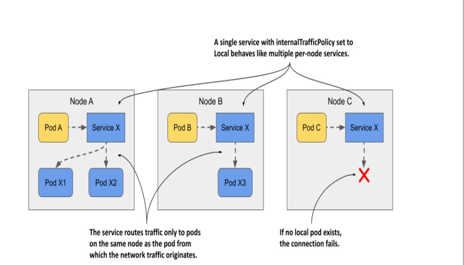 注意 你之前学习过 externalTrafficPolicy 字段,该字段用于在外部流量进入集群时防止节点之间不必要的网络跳转。服务的 internalTrafficPolicy 字段类似,但用途不同。