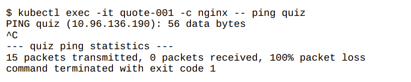 使用该服务,请按照以下步骤在 quote-001 Pod 中运行一个 shell: