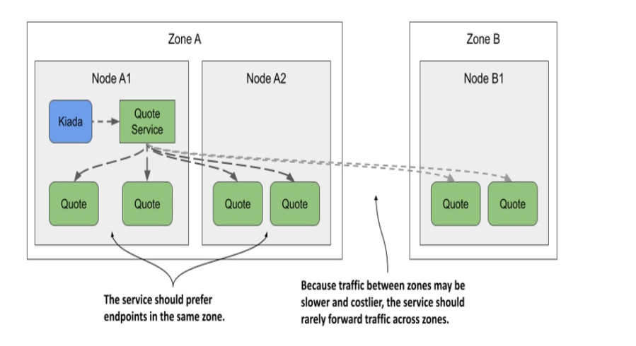 当你部署 pod 时,它们会分布在集群中的各个节点上。如果集群节点跨越不同的可用区或区域,并且部署在这些节点上的 pod 之间进行流量交换,网络性能和流量成本可能会成为问题。在这种情况下,让服务将流量转发到离流量源 pod 较近的 pod 是有意义的。