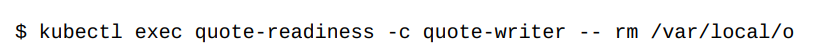如果你将此就绪探针添加到你的 Quote Pod,你会发现只有当 quote 文件存在时,该 Pod 才显示为就绪。尝试按如下方式从 Pod 删除该文件: