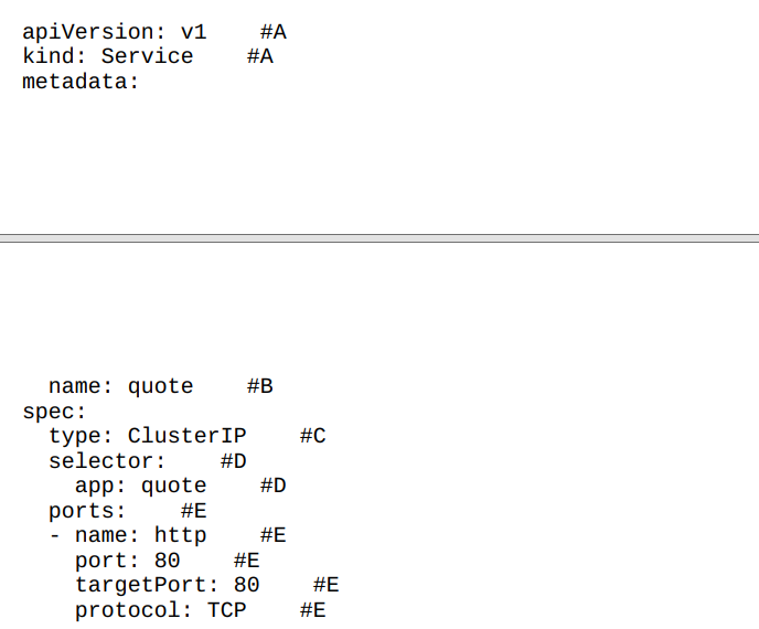 下面的清单展示了 quote Service 对象的最小 YAML 清单。列表 11.1 quote 服务的 YAML 清单: