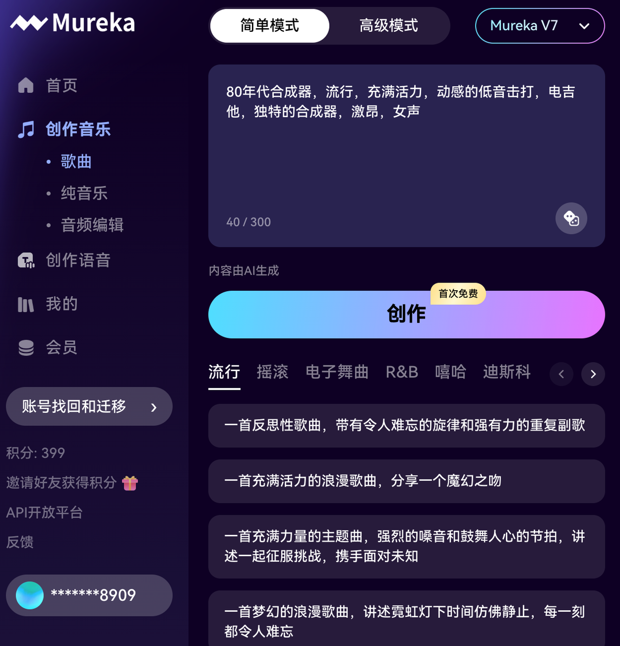 只需一段文字描述,AI就能在几十秒内生成一首结构完整、旋律动听、甚至带有人声演唱的歌曲—这早已不是科幻小说中的场景。来自美国的Suno此前在这一领域一枝独秀,吸引了全球无数音乐爱好者和创作者。今天给大家介绍的是来自国产的 AI 音乐生成平台 Mureka。