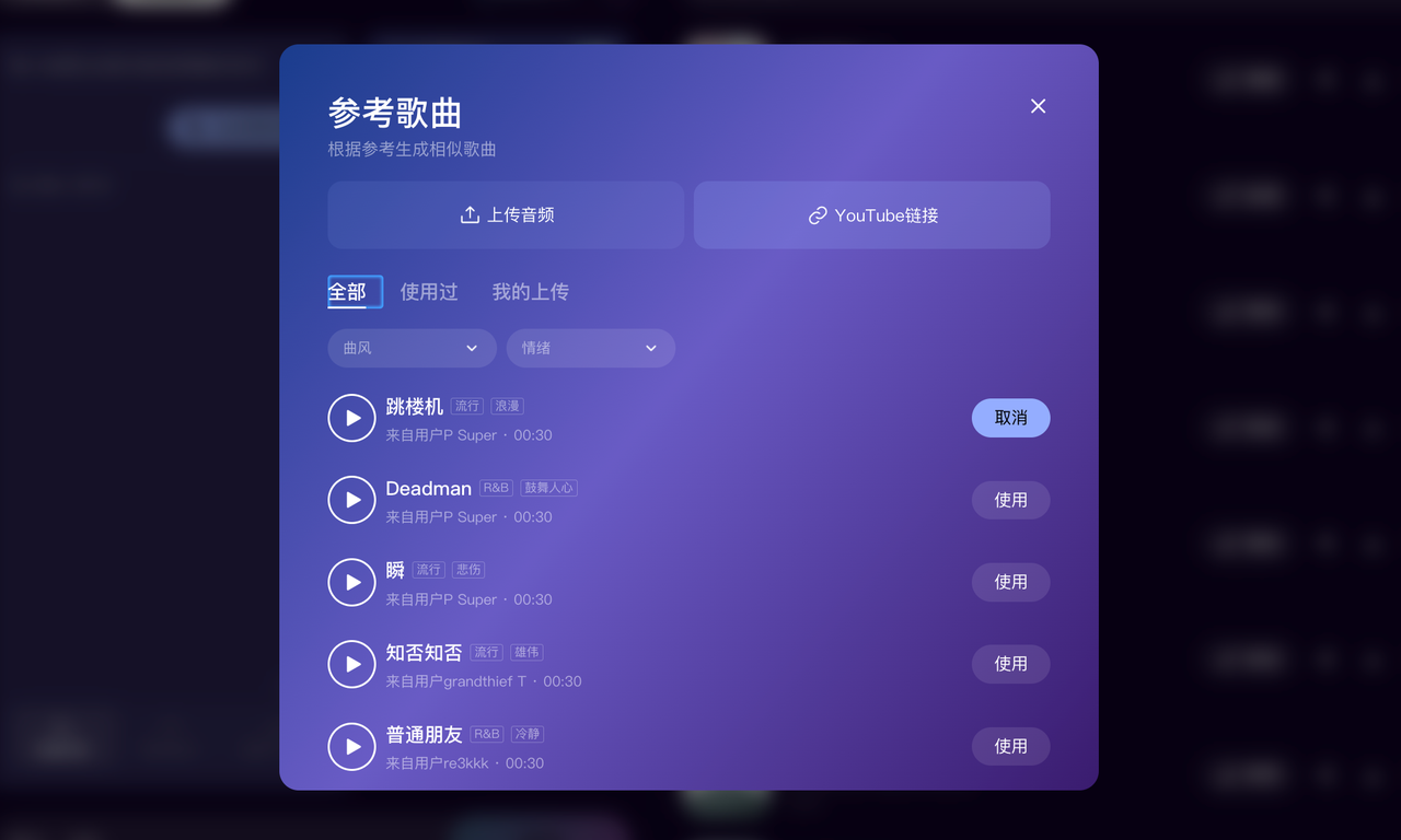 上传任意歌曲(如爆款神曲《跳楼机》),AI即刻解析其风格并生成相似的新作品,是快速追热点、激发灵感的利器。