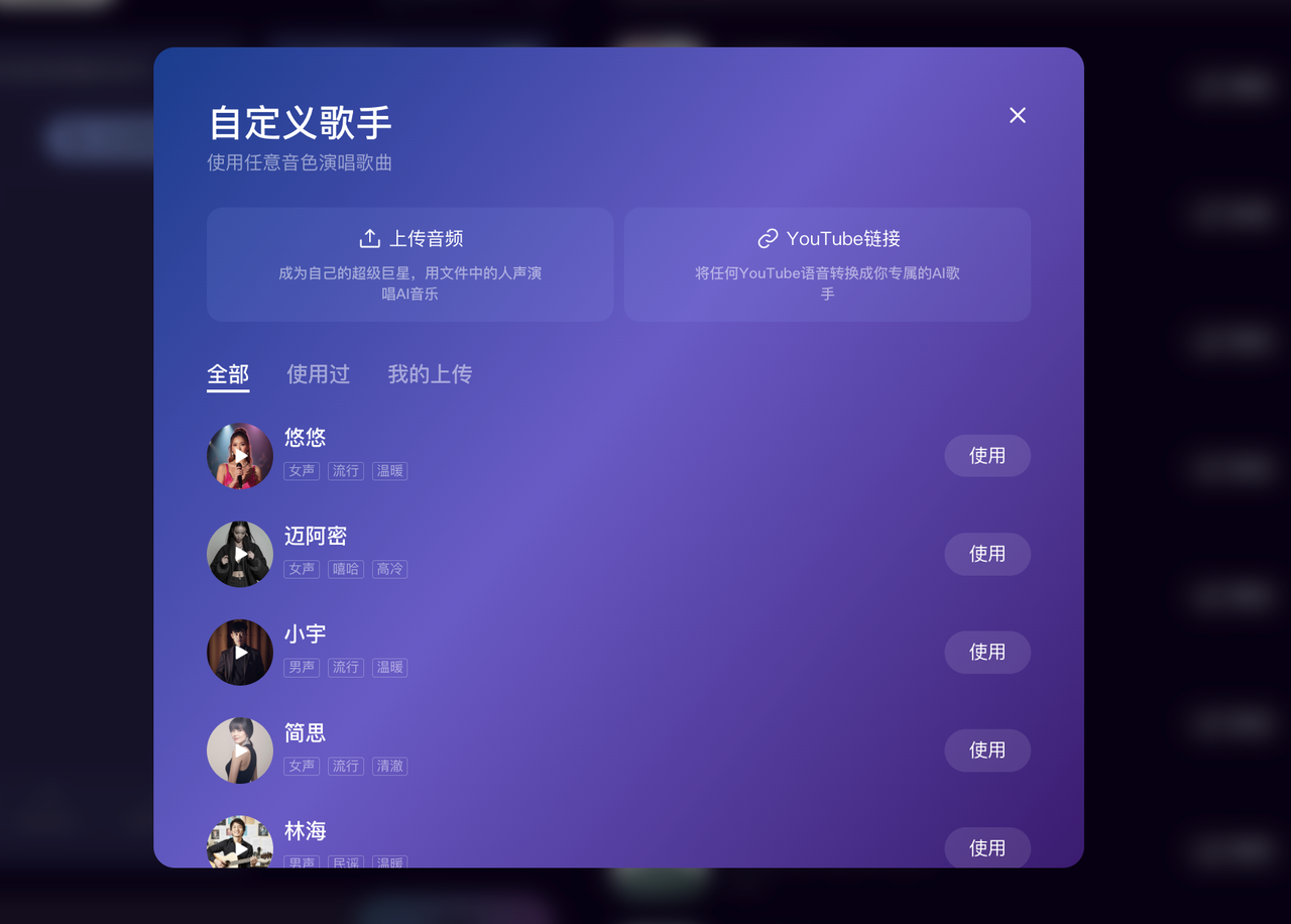 音色定制与克隆:输入文字描述定制独特音色,或直接上传一段音频,克隆你自己(或任何人的)声音,打造专属虚拟歌手或配音员。